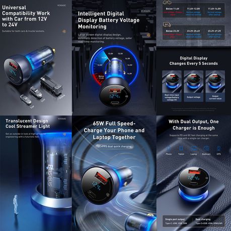 Baseus Particular Digital Display QC+PPS Dual Quick Charger Car Charger 65W Light ochre
