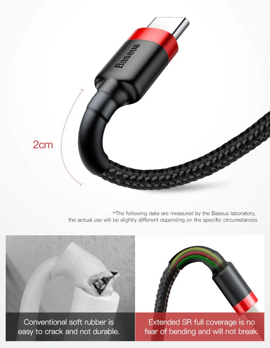 Baseus USB Type C Cable for Samsung S10 S9 Quick Charge 3.0 Cable USB C Fast Charging for Huawei P30 Xiaomi USB-C Charger Wire